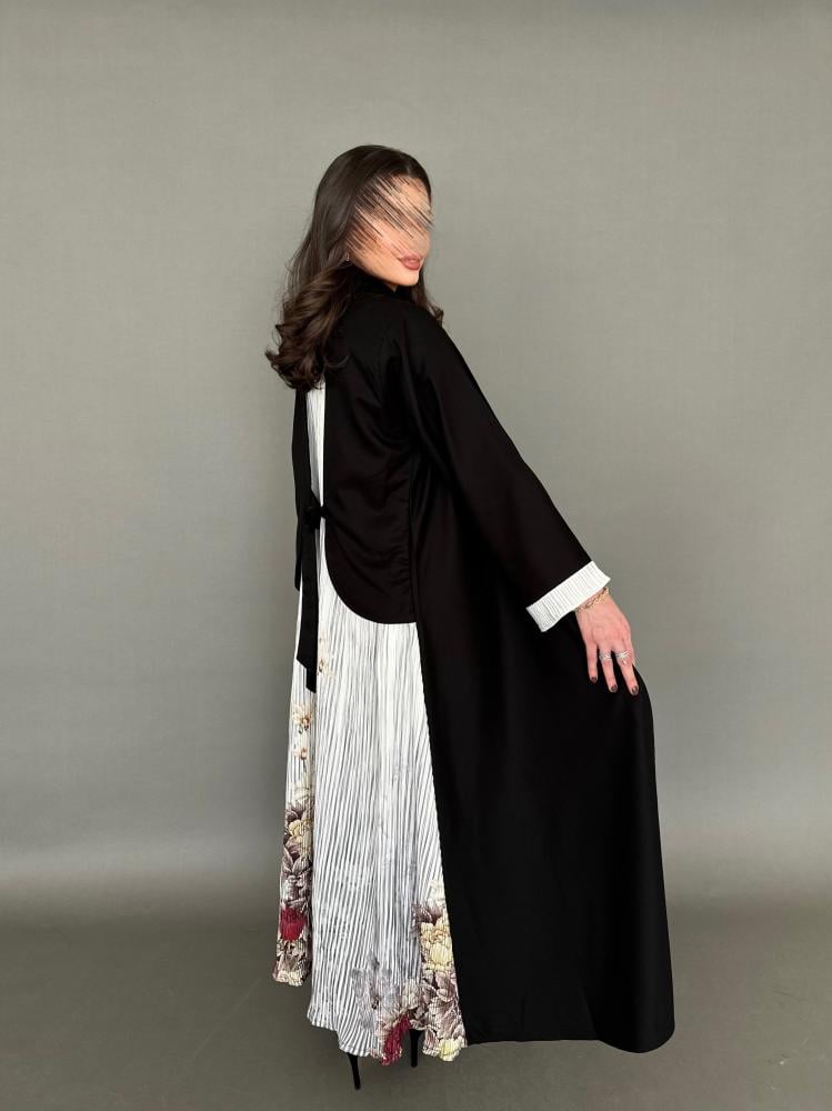 • اللون: تأتي العباية باللون الأسود الكلاسيكي، وهو اللون الأكثر أناقة وتنوعاً، مما يجعلها سهلة التنسيق ومناسبة لمختلف ألوان البشرة والإكسسوارات.